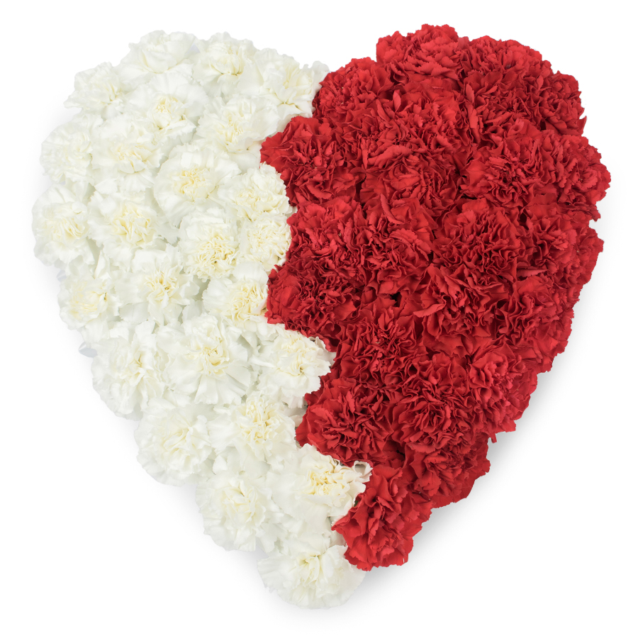 Our Elegant Heart-Shaped Carnations Arrangement is the perfect expression of love and sympathy. Featuring a stunning mix of white and red carnations, this bouquet is thoughtfully hand-selected to ensure each bloom is fresh and vibrant.